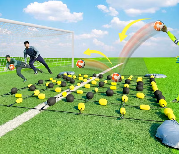 12 больших и 43 маленьких элемента отбивают мяч в разных направлениях, заставляя вратарей адаптироваться к новым игровым ситуациям и постоянно улучшать свою реакцию.